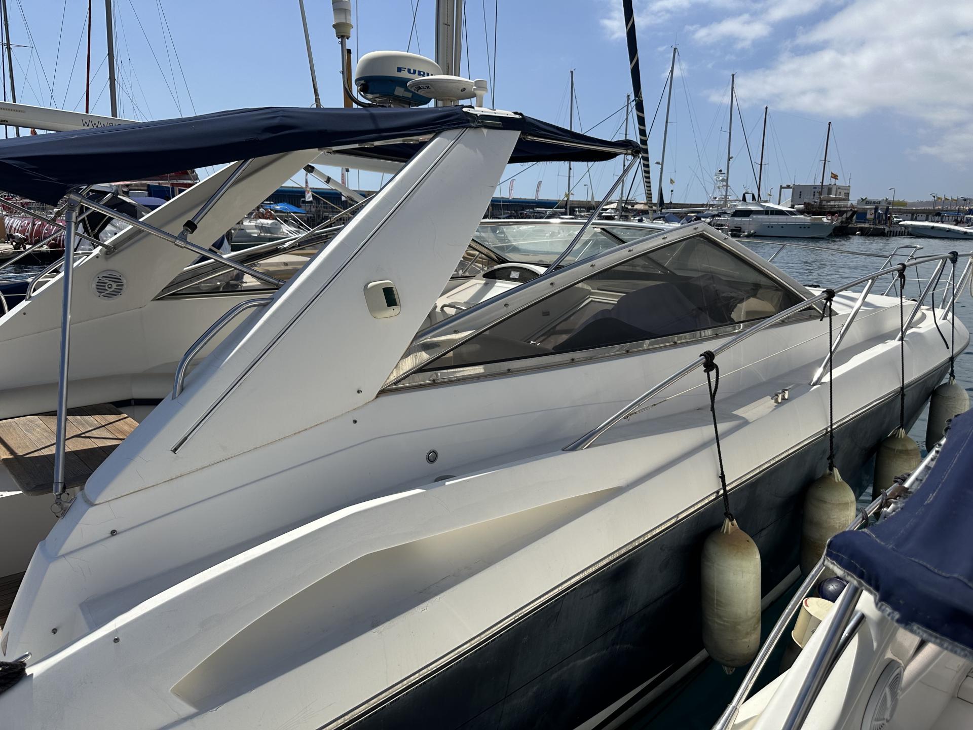 Introducing the stunning 2004 Sunseeker Portofino 35, a remarkable motor yacht that combines elegance and performance. With an overall length of 11.91 meters, this vessel showcases a sleek fiberglass hull designed in a modified Vee shape, ensuring smooth navigation and stability on the water. Powered by twin Volvo KAMD 300 diesel engines, each delivering an impressive 205.07 kW, the Portofino 35 offers a thrilling yet comfortable cruising experience. The stern drive configuration enhances maneuverability, making it perfect for both leisurely outings and spirited adventures. The yacht features a well-appointed accommodation area, including a head for convenience. The thoughtful design and quality craftsmanship make this boat a true gem for any boating enthusiast. Whether you're entertaining guests or enjoying a peaceful day on the water, the PERLA AZUL promises unforgettable moments and luxurious comfort.