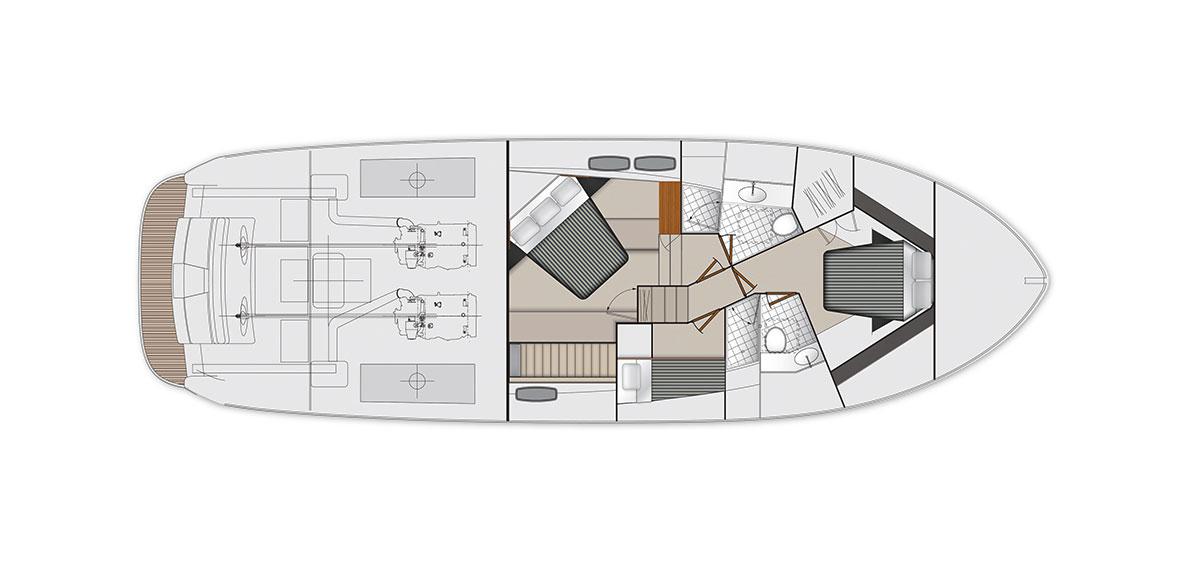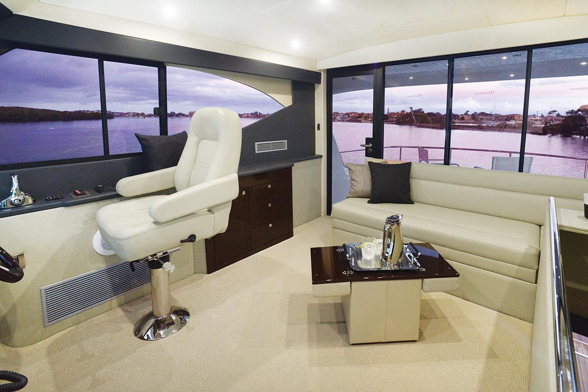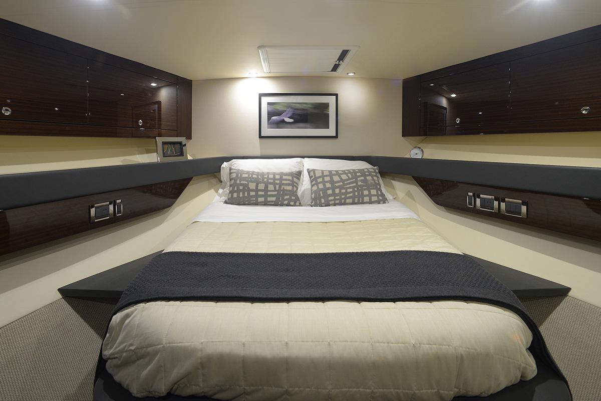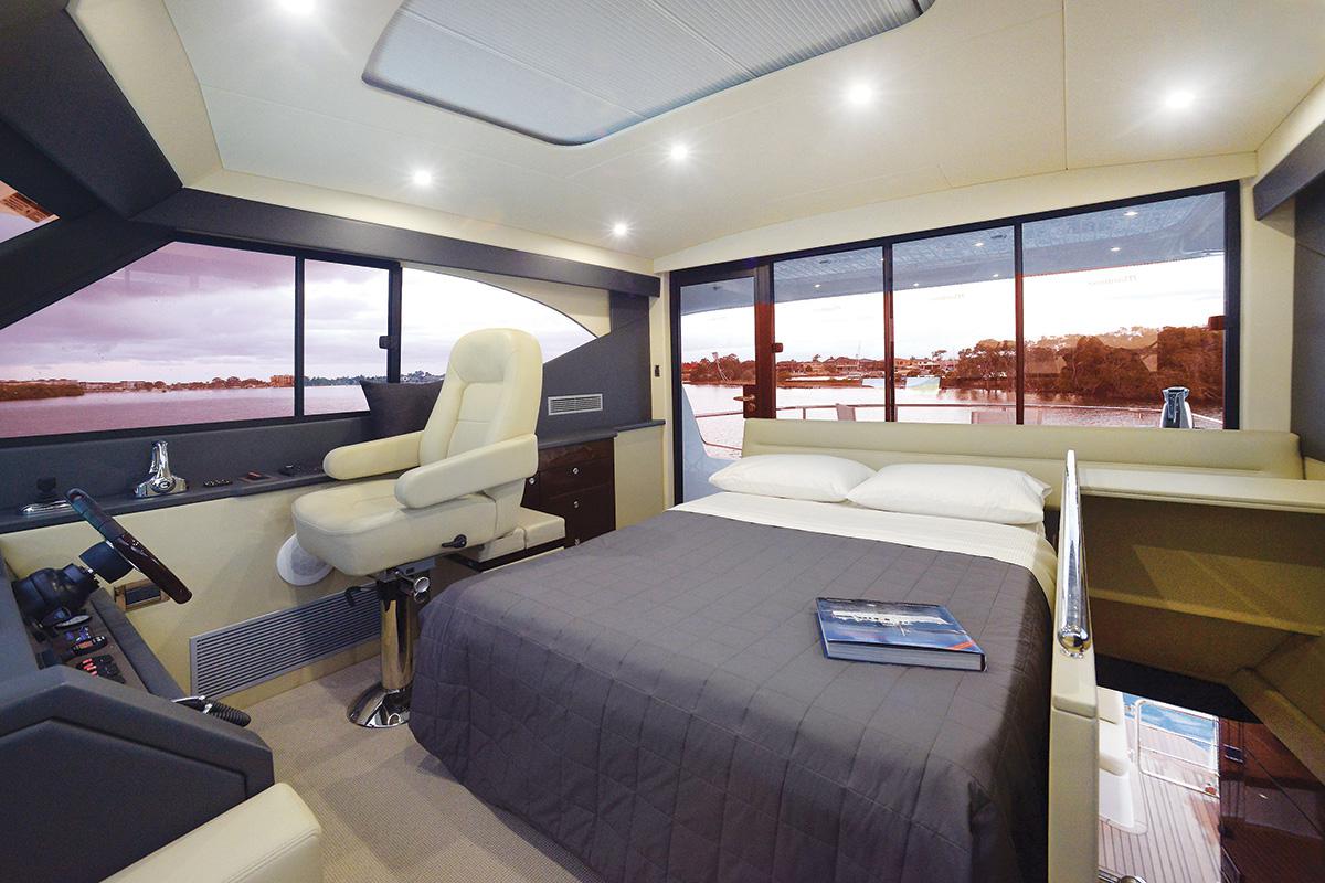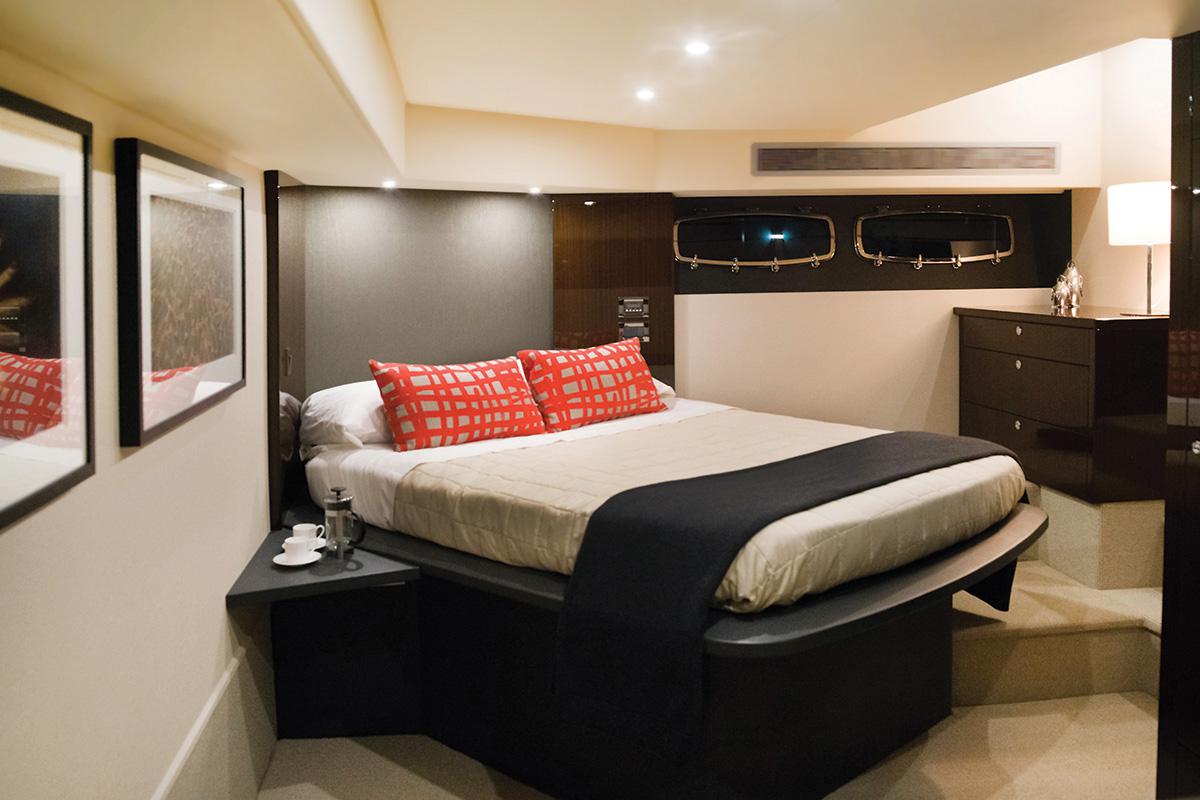 The Maritimo M51 combines breathtaking performance and impressive features embodied in the unmistakable Maritimo design – a genuine long-range luxury motor yacht for those looking for space, comfort and power. The first thing you will notice is it loses none of the Maritimo hallmarks: the aft bi-fold doors, internal staircase to the enclosed flybridge (with fold out sofa option) and the walk around decks to the forward end of the windscreen. Maritimo’s advanced hull design and race-bred technology ensure superb balance, poise and fuel efficiency without compromise. But it is the sum of all the details including the impressive full beam master and an innovative third cabin to starboard which can be optioned as a utility room. The aft galley is of generous proportions with ample storage and bi-fold doors opening out to the spacious cockpit entertaining area. The cockpit also boasts an electrically operated lazarette hatch giving full access for tender storage and/or equipment which creates this motor yacht’s quintessential appeal. The flybridge opens up to the outdoors with a three panel sliding window and glass access door.
