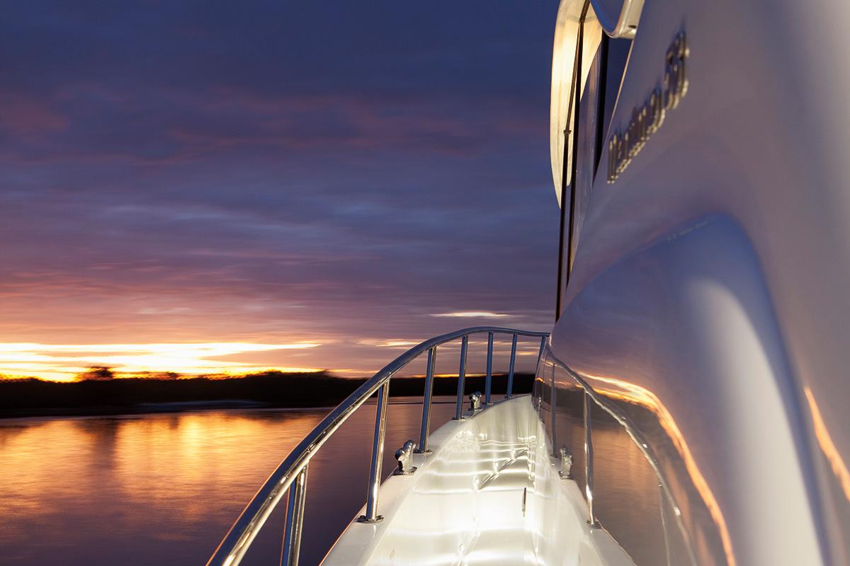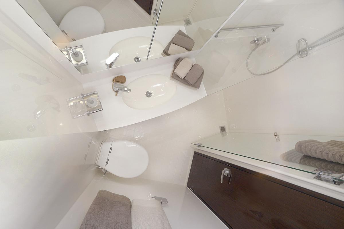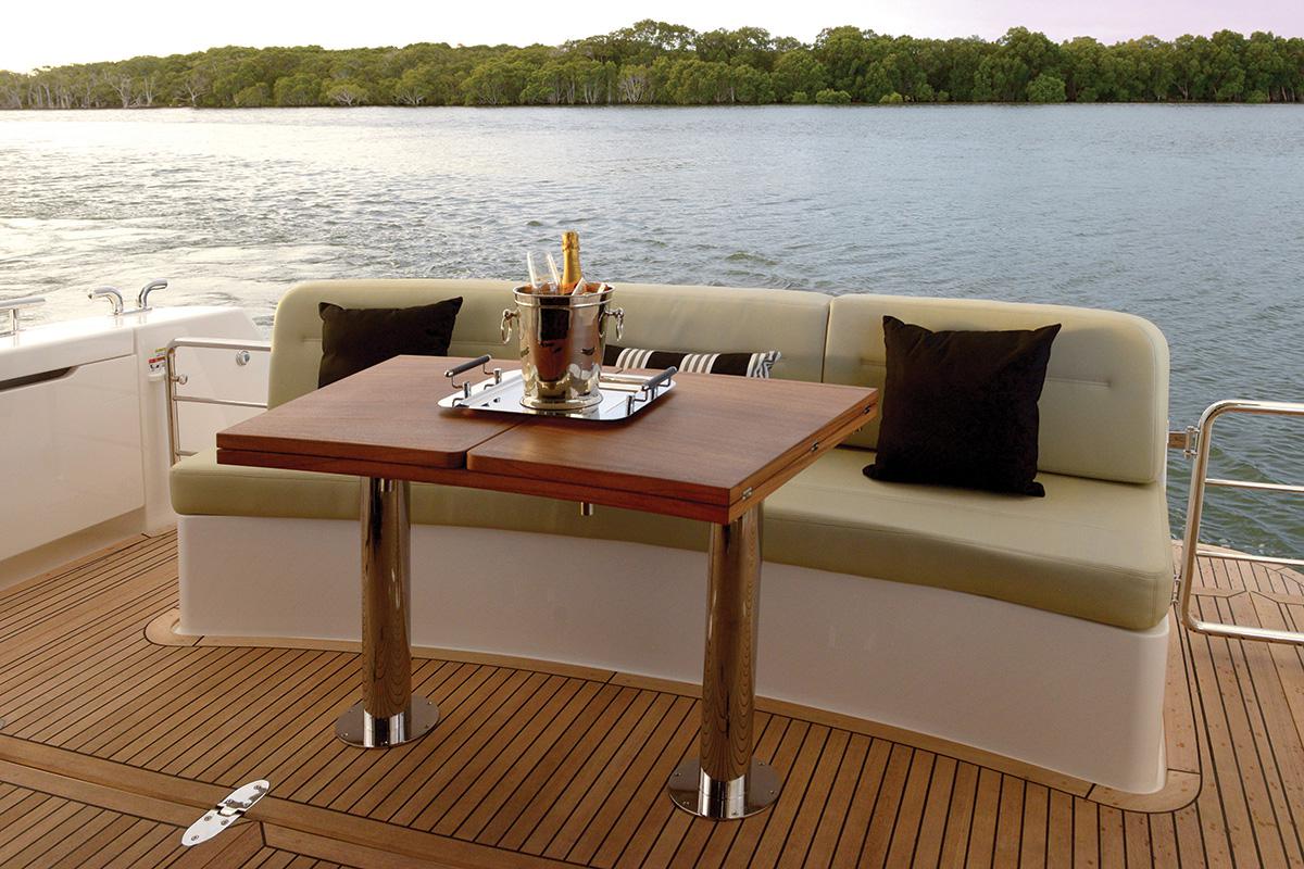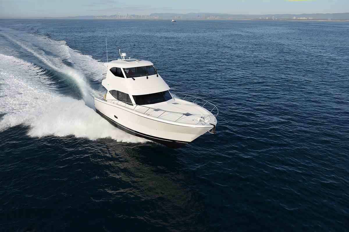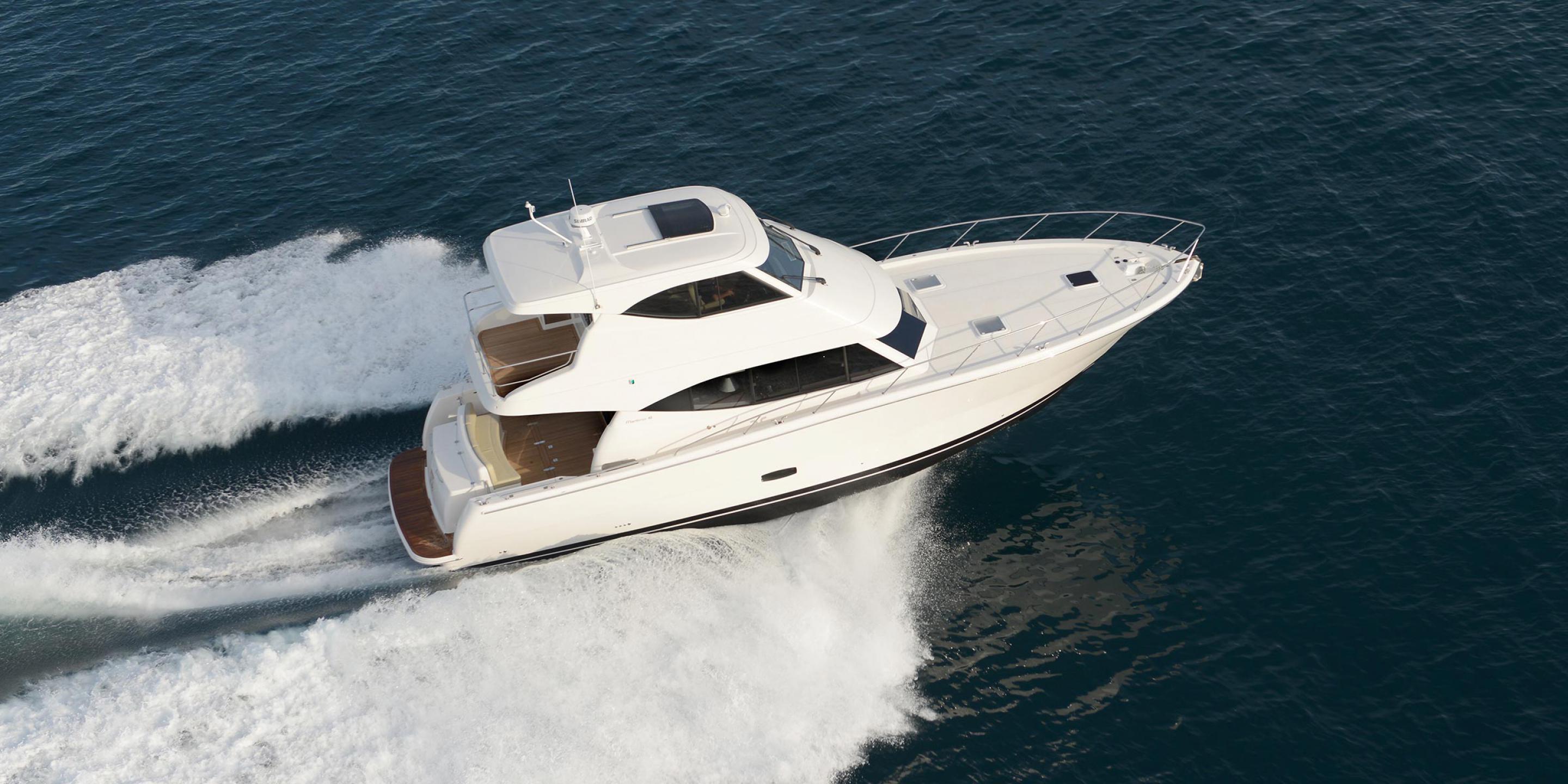 The Maritimo M51 combines breathtaking performance and impressive features embodied in the unmistakable Maritimo design – a genuine long-range luxury motor yacht for those looking for space, comfort and power. The first thing you will notice is it loses none of the Maritimo hallmarks: the aft bi-fold doors, internal staircase to the enclosed flybridge (with fold out sofa option) and the walk around decks to the forward end of the windscreen. Maritimo’s advanced hull design and race-bred technology ensure superb balance, poise and fuel efficiency without compromise. But it is the sum of all the details including the impressive full beam master and an innovative third cabin to starboard which can be optioned as a utility room. The aft galley is of generous proportions with ample storage and bi-fold doors opening out to the spacious cockpit entertaining area. The cockpit also boasts an electrically operated lazarette hatch giving full access for tender storage and/or equipment which creates this motor yacht’s quintessential appeal. The flybridge opens up to the outdoors with a three panel sliding window and glass access door.