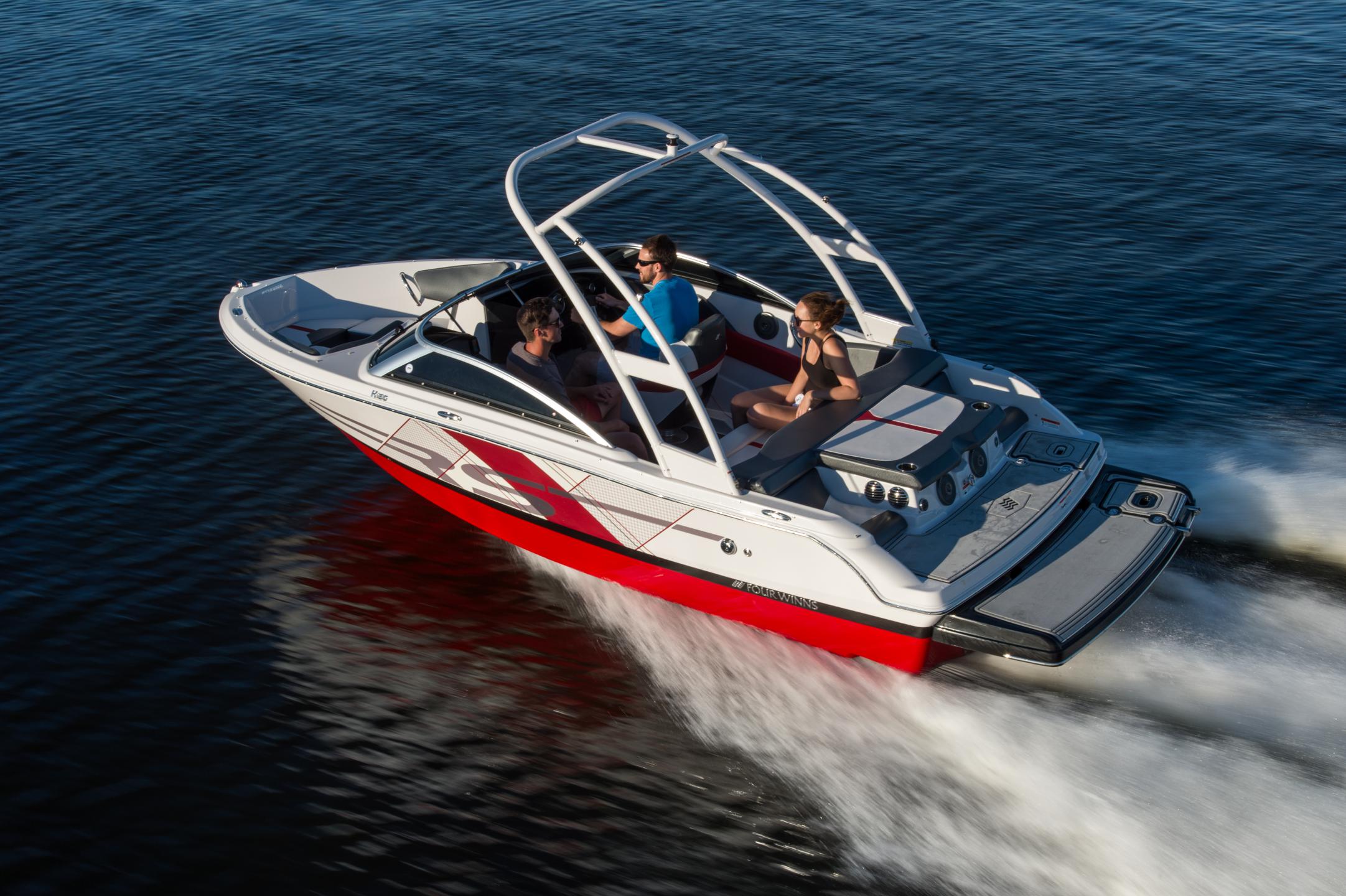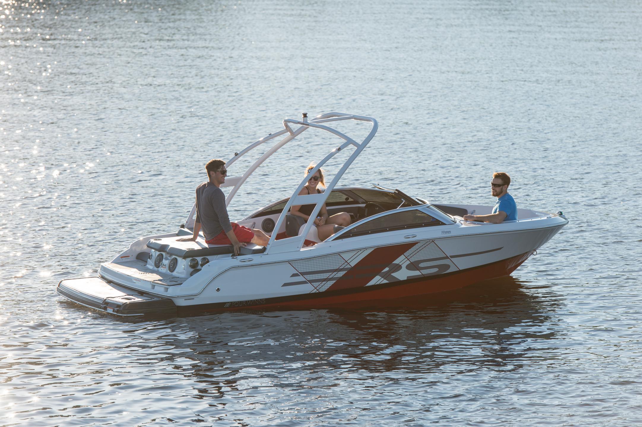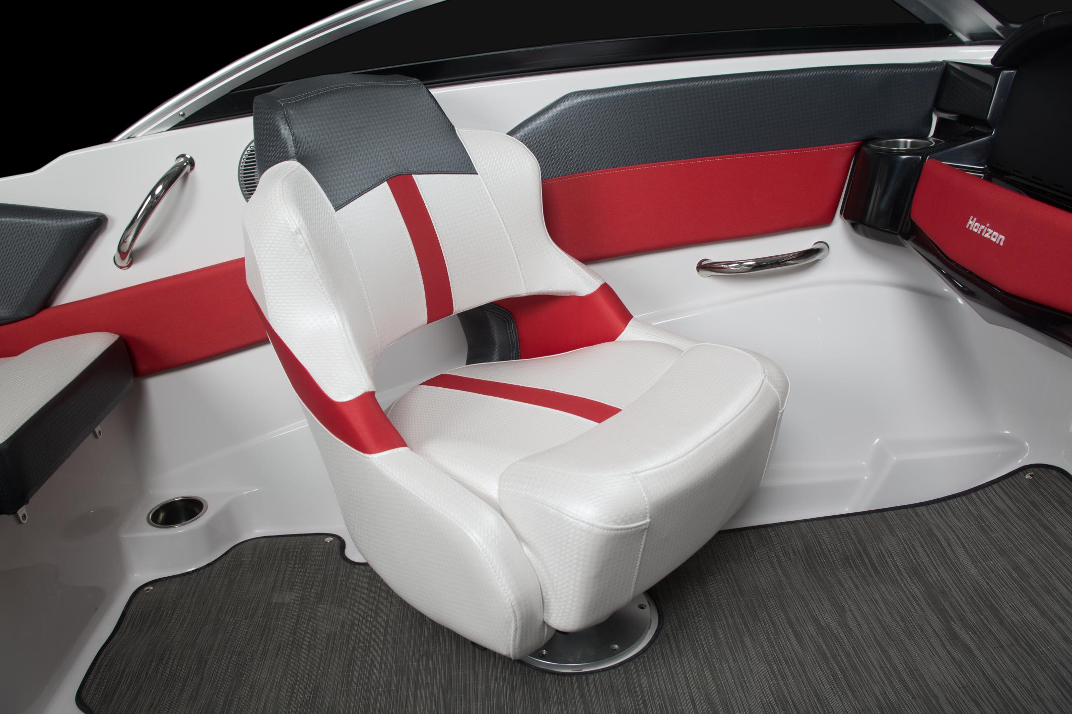 Ample space for an 18’ sport boat; this open-bow sport platform comfortably fits the entire family. Its contemporary styling adds a sense of excitement to your day on the water. With your choice of four exterior color options, accompanied RS graphics, and an abundance of upgrades such as the extended swim platform, the Horizon 180 RS is ready for all your boating needs.