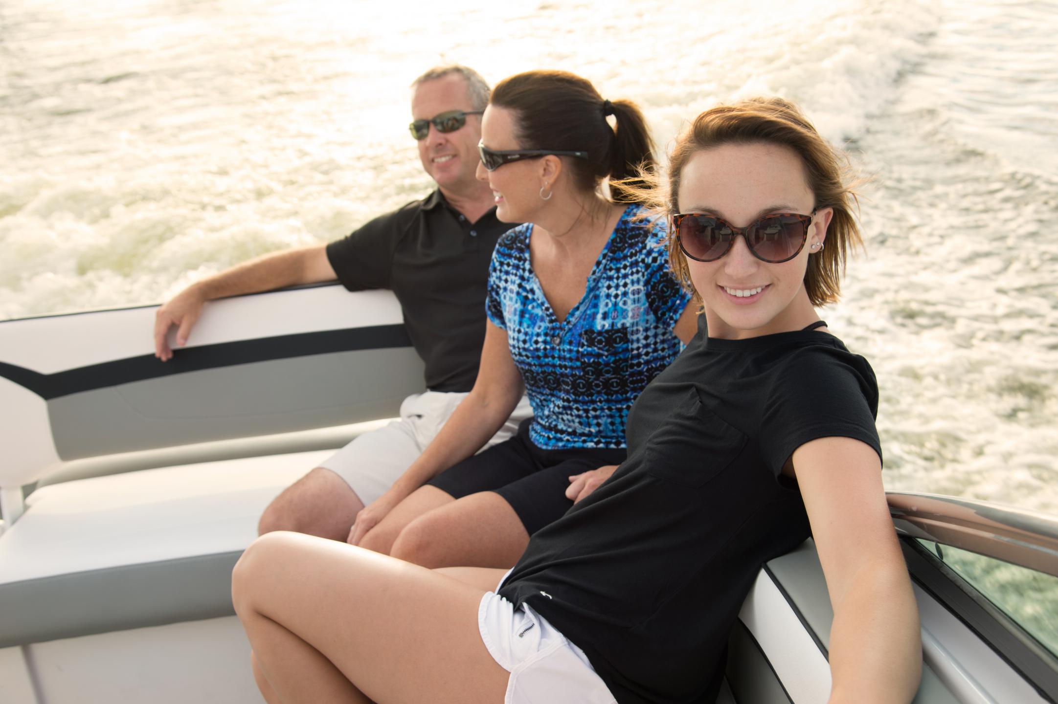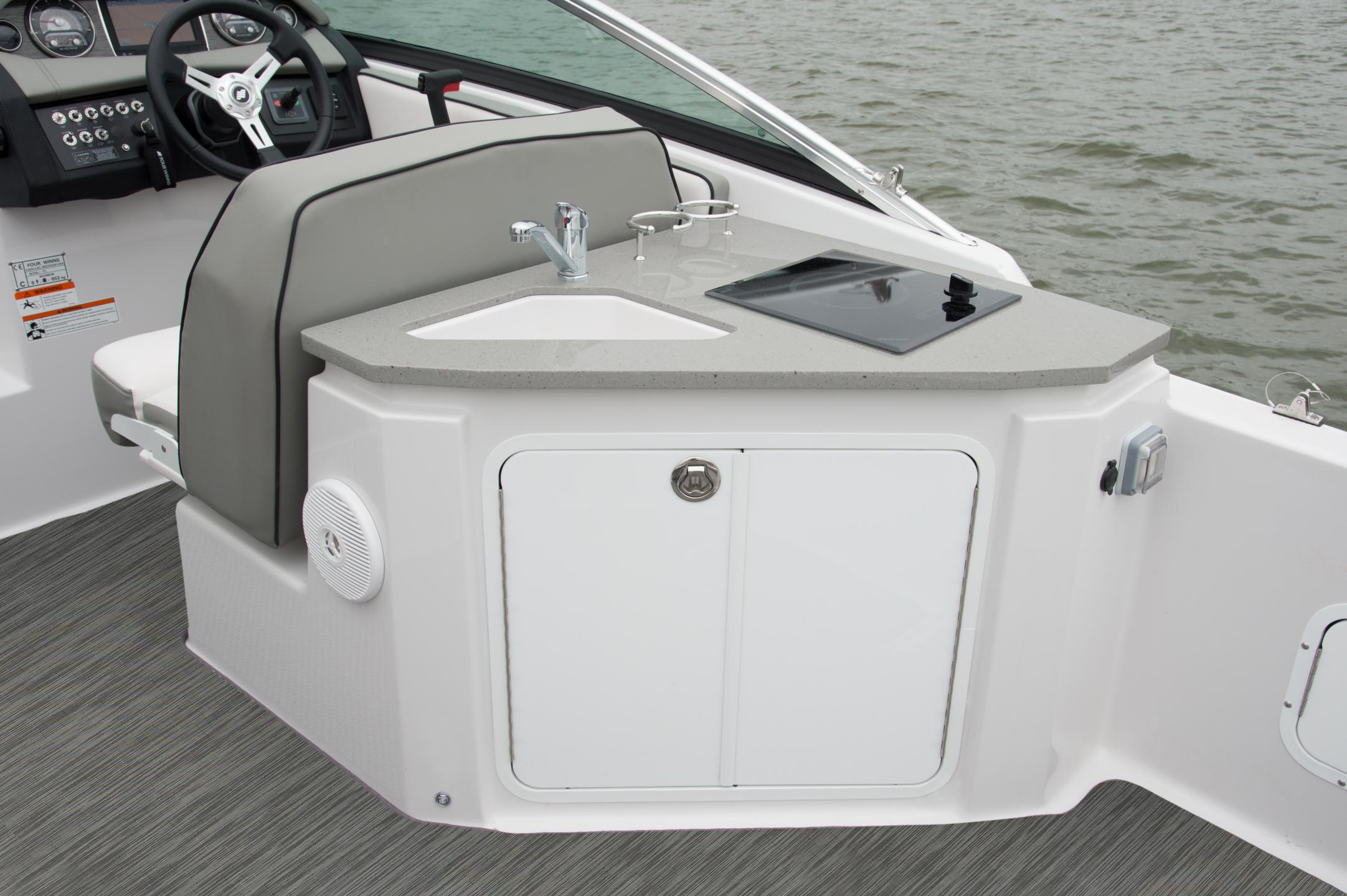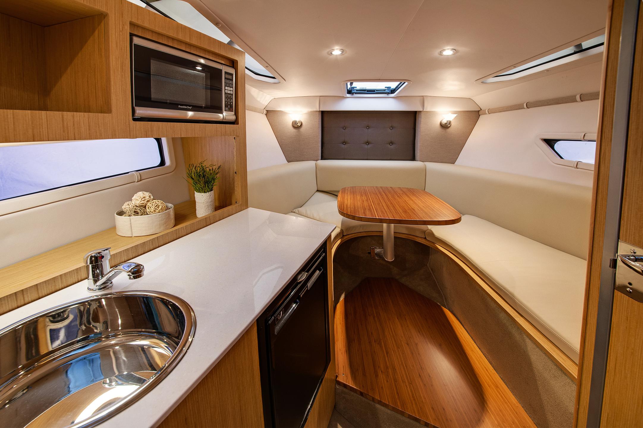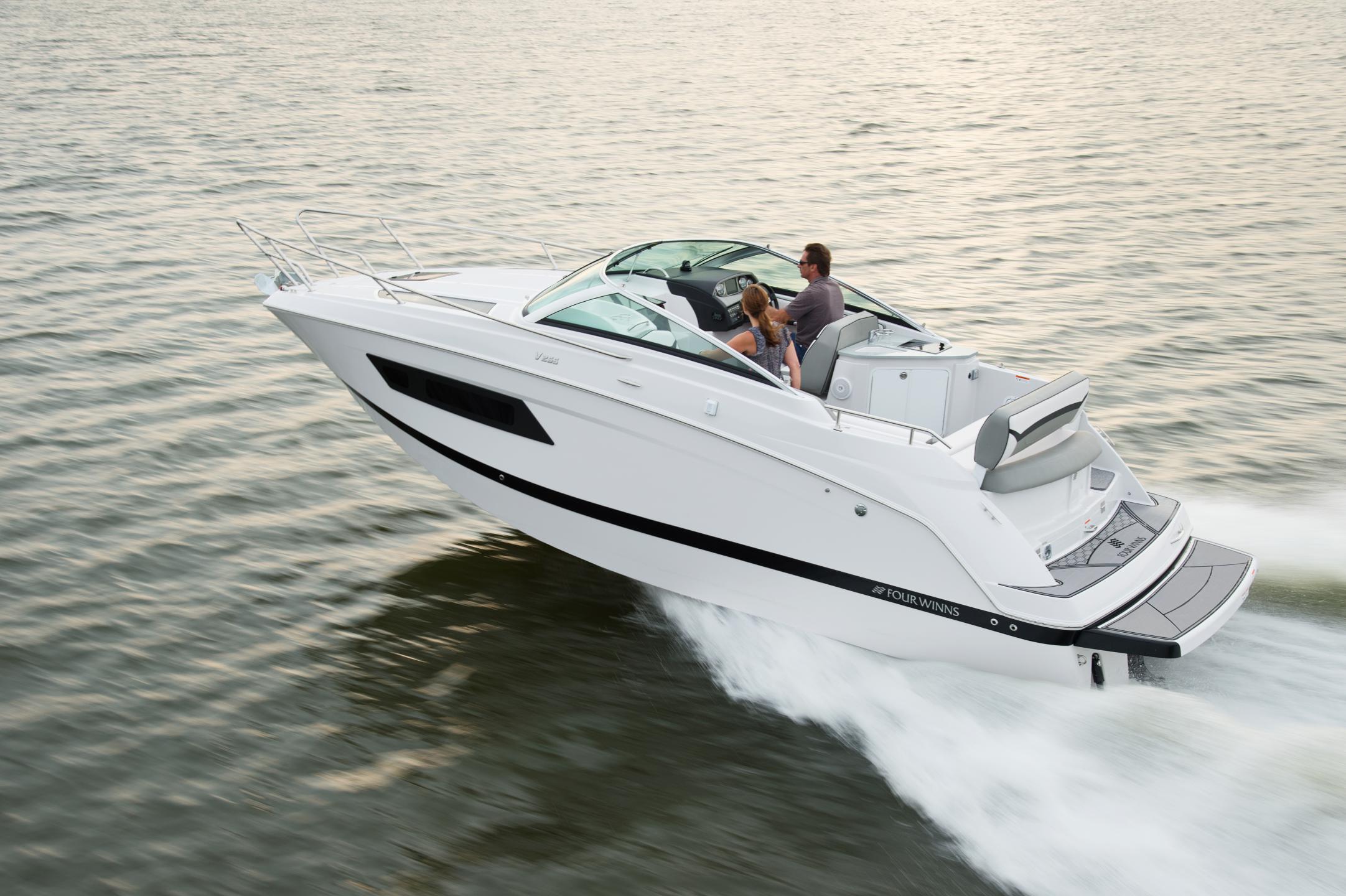 The Vista 255 features an innovative cockpit and a spacious, well-appointed cabin making it a great all-around Express Cruiser. The cockpit seating easily converts for lounging, to dining, to entertaining. The cabin amenities include a queen sized mid-cabin berth, spacious forward V-Berth, large stand-up head, and breakfast center.