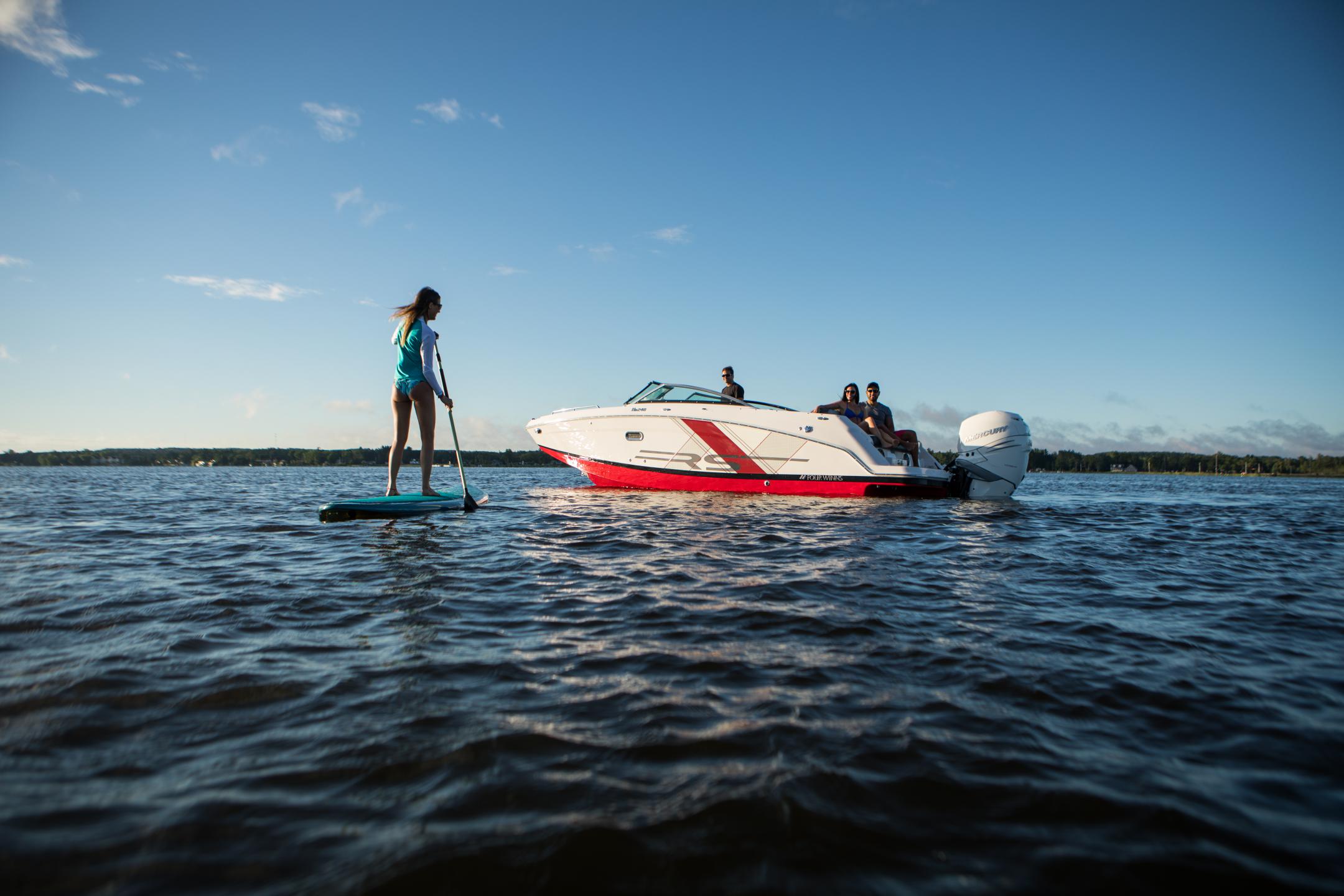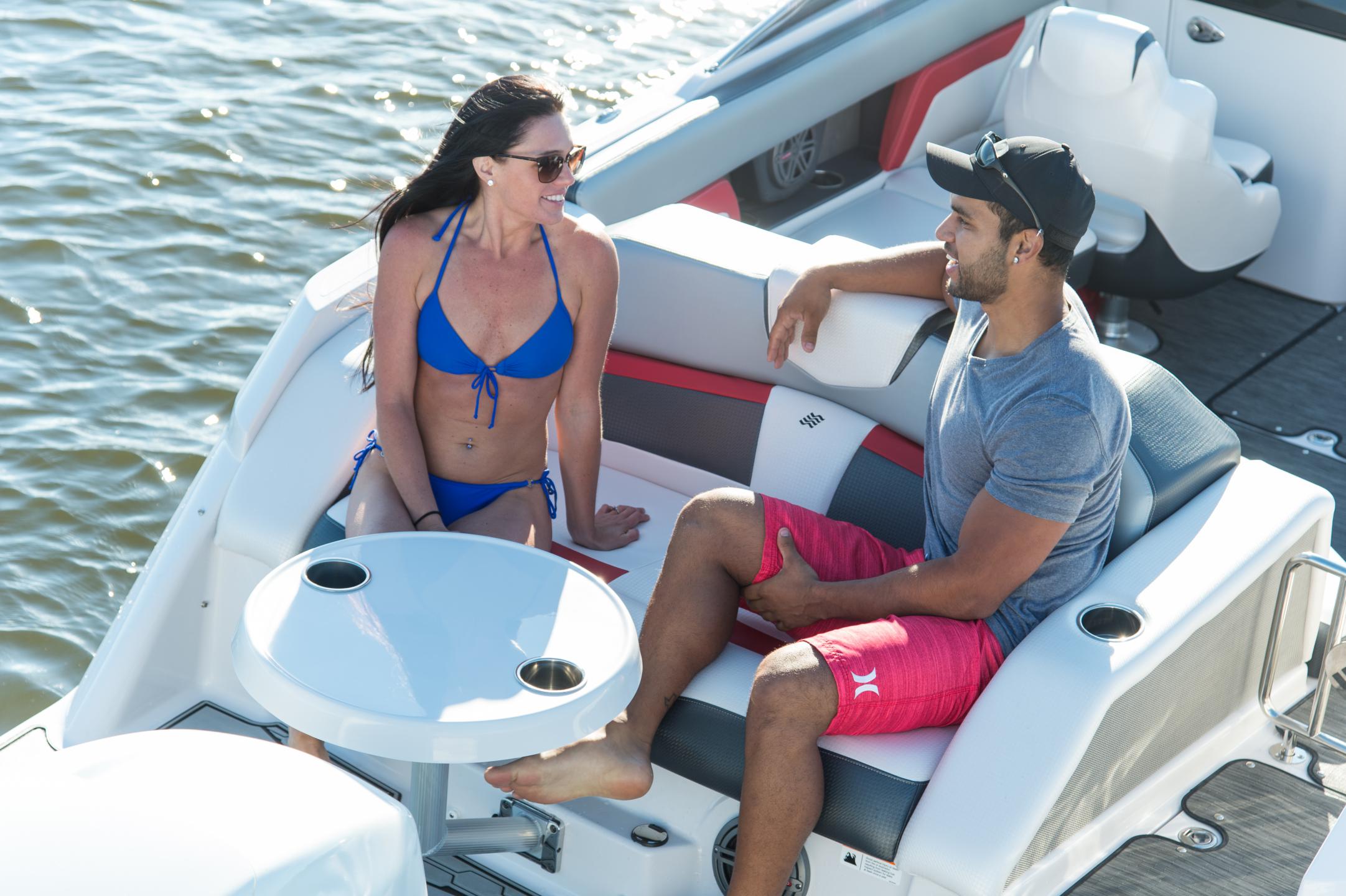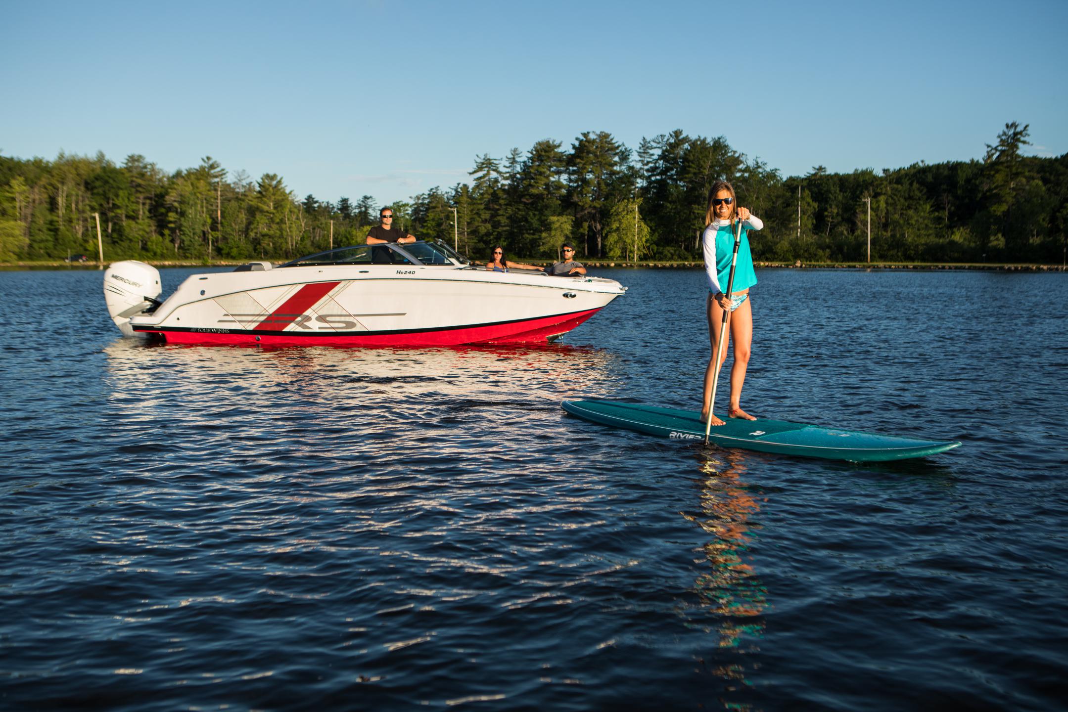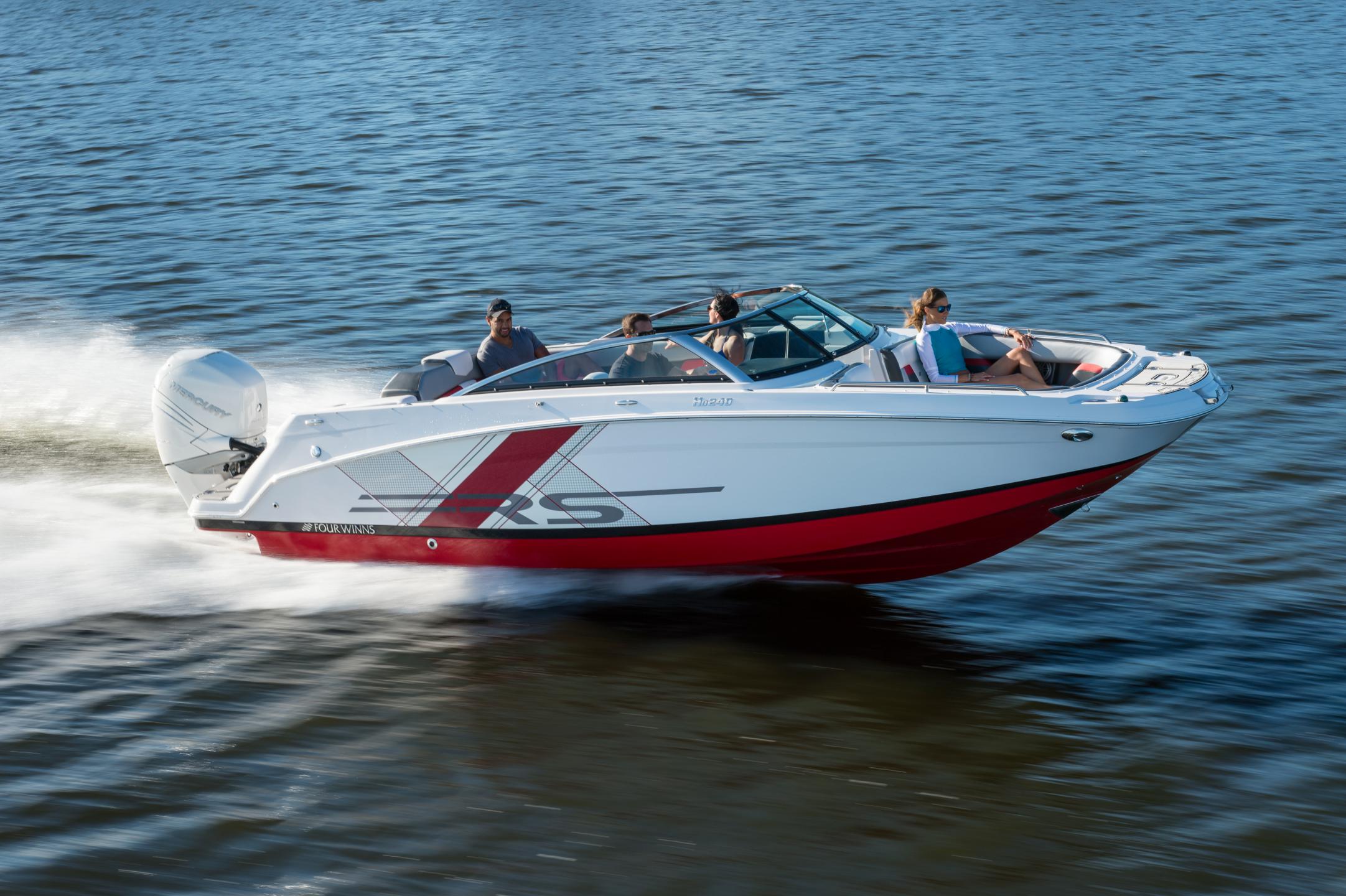 Discover The HD 240 OB RS Take the summer into your own hands with the HD 240 OB RS. The new RS color schemes and graphics give this boat the sporty, edgy look you’re after while maintaining the highest level of comfort and satisfaction you’ve come to expect. Remarkable features include spacious swim platforms, dual swim ladders, stern lounge seating, and a standard, custom trailer that'll take your ventures to new waters; not to mention the enclosed head with porta pottie will keep you there.