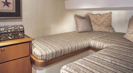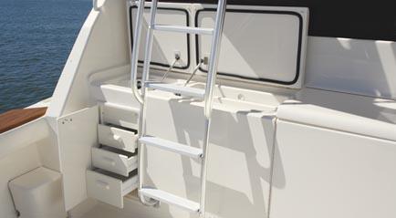 The Ocean 42 Super Sport Luxurious accommodations for as many as seven fortunate Ocean travelers. A master stateroom worthy of the name and a second plush stateroom with generous amenities to pamper your guests. A magnificent salon, trimmed in rich teak or optional cherry, is provided with a complete entertainment center. Her main-deck galley, equipped with an ample array of appliances, rises to every convivial occasion. The dinette is large and comfortable. For those whose pulses race at the thought of pursuing game fish, the 42 SS is all they could wish for. Her tournament-sized cockpit and bridge are among the largest in her class. Owning her, boaters will gain admission to the exhilarating offshore world, reaching distant sportfishing or cruising destinations denied smaller, less luxurious boats. She is perfect for those wanting to step up into a “true yacht” or boaters no longer needing the space and power of larger models, but who do not wish to compromise. The 42 SS proves once more that The Best Part Of Life Is Spent On An Ocean. Every Ocean Yacht is backed by a transferable 5 -Year Limited Structural Hull Warranty. Five-Year Engine and Generator Limited Warranties are extended by the respective manufacturers. Ocean was the first manufacturer in the industry to offer such owner protection and peace of mind. Ocean hulls are NMMA certified, meeting or exceeding the materials and construction standards of the National Marine Manufacturers Association. Warranty program terms and conditions are available upon request.