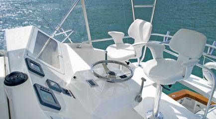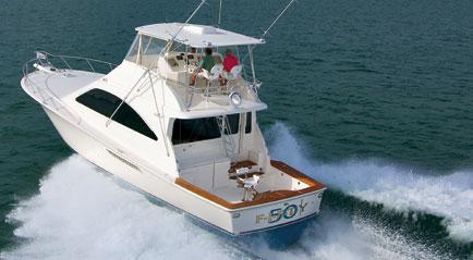 The Ocean 50 Super Sport She behaves as if she preferred rough seas and gray days. As if a head sea, rain, and squall are elements whose taming is her ultimate pleasure. Her secret is an all-weather hull like no other planing hull in the industry. She tracks like a hunter. She is broad and stable. If your satisfaction is a contest of will with a blue marlin, this Ocean is made for you. Her bridge is a study in efficiency, her cockpit tuned to the requirements of serious anglers. Inside, are the elegant salon, roomy dinette, and well-equipped galley that distinguish every Ocean. Below, a true master stateroom announces the precedence of her owners. Together with two additional staterooms and two heads, the yacht carries eight travelers in comfort. For gray days and blue sky ones, for anglers and cruisers both – the 50 Super Sport has become one of sportfishing’s and cruising’s most accommodating and sought-after midsized yachts. The Best Part Of Life Is Spent On An Ocean. Every Ocean Yacht is backed by a transferable 5 -Year Limited Structural Hull Warranty. Five-Year Engine and Generator Limited Warranties are extended by the respective manufacturers. Ocean was the first manufacturer in the industry to offer such owner protection and peace of mind. Ocean hulls are NMMA certified, meeting or exceeding the materials and construction standards of the National Marine Manufacturers Association. Warranty program terms and conditions are available upon request.